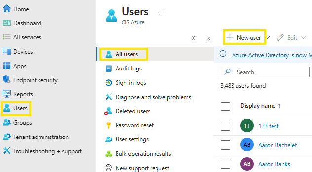 Select Users -> All Users -> + New User