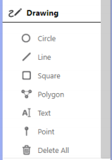 Use the Drawing tools to add visual data to the map. A pop-up box is displayed when a Drawing tool is selected where you can modify the color or thickness, and select which labels are displayed on the map.