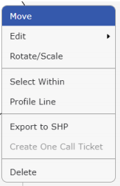 Right click a drawing or a label on the map to modify it, select the objects within a drawing (Select Within), or view the Profile Line of a drawing: