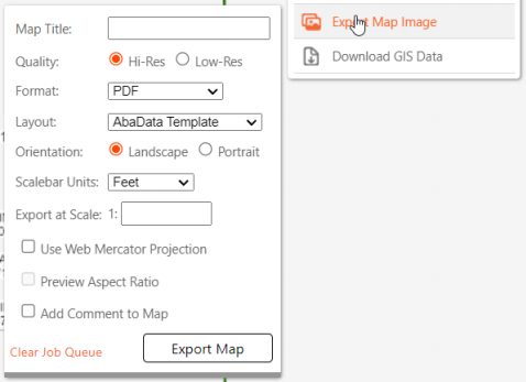 7. Once generated, the map will be listed in Export Jobs below the Export Map menu. Click Open to view, save or print the map.