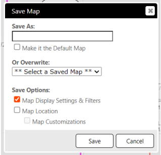 - Enter a name for the map in the Save As field or select an existing map to overwrite from the Or Overwrite drop.