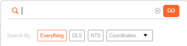 By default, the search will apply to Everything. To search for exact coordinates, select DLS, NTS or another system from the Coordinates drop-down menu.